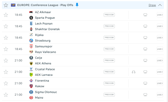 Sonte në program rikthehen ndeshjet e dy kompeticioneve, UEFA Europa League dhe UEFA Europa Conference League.
