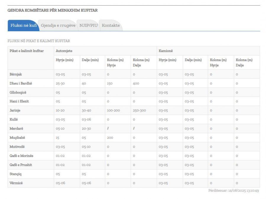 Në pikën kufitare të Merdarit vazhdon të ketë pritje për dalje nga Kosova. Sipas këtyre të dhënave, pritja për dalje nga Kosova në Merdar është 30 minuta.
