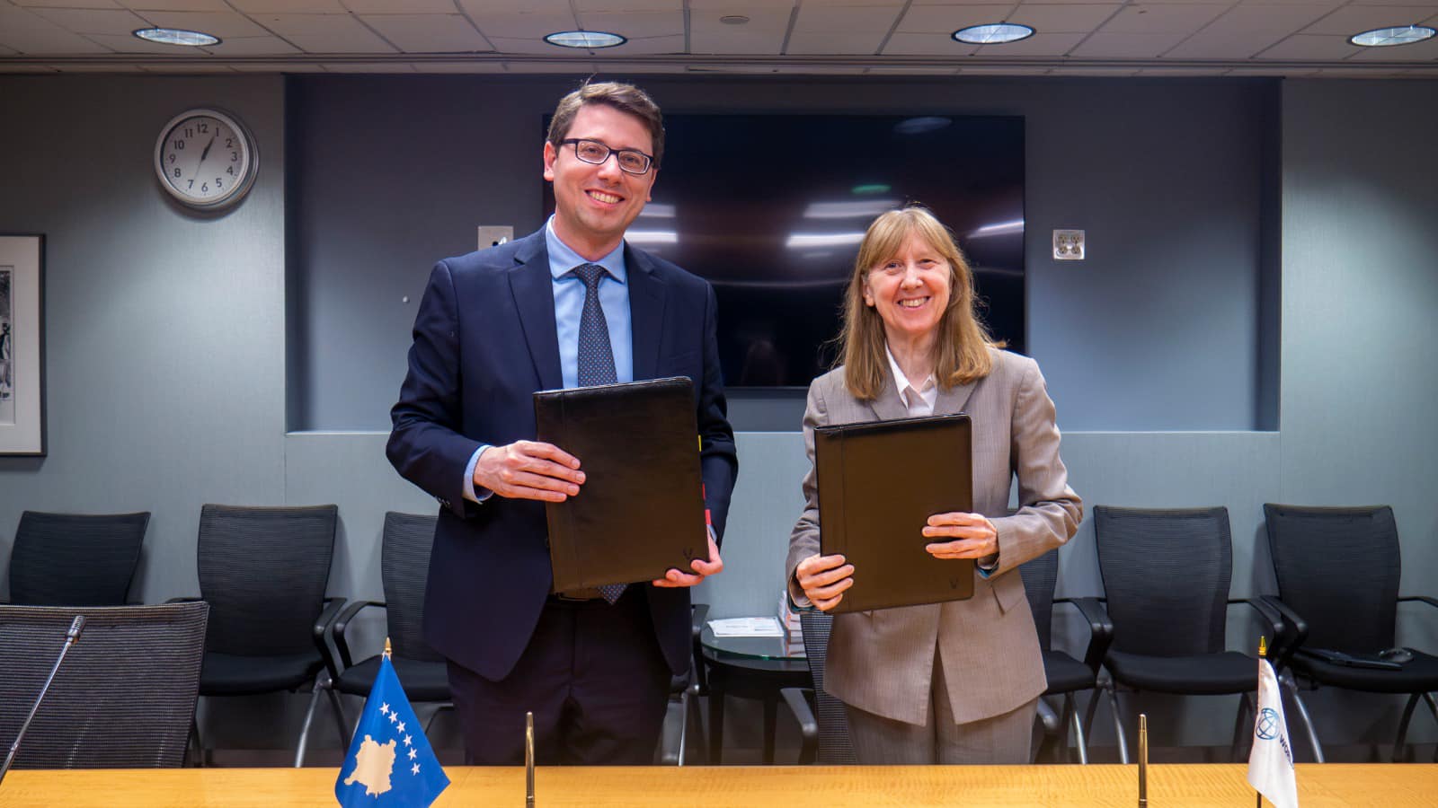 Ministri i Financave, Hekuran Murati dhe zëvendëspresidentja për Evropë dhe Azi Qendrore në Bankën Botërore, Antonella Bassani, kanë nënshkruar marrëveshje për financimin e politikave zhvillimore për politikën fiskale, konkurrueshmërinë dhe rritjen e gjelbër mes Kosovës dhe Bankës Botërore.