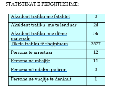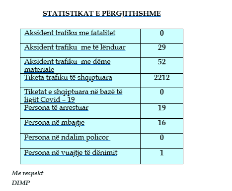 Ndërsa, në raportin e datës 20 korrik, janë evidentuar 29 aksidente me të lënduar dhe 52 me dëme materiale. Gjatë kësaj kohe, policia ka shqiptuar 2212 gjoba ndaj shoferëve që kanë shkelur ligjet rrugore.