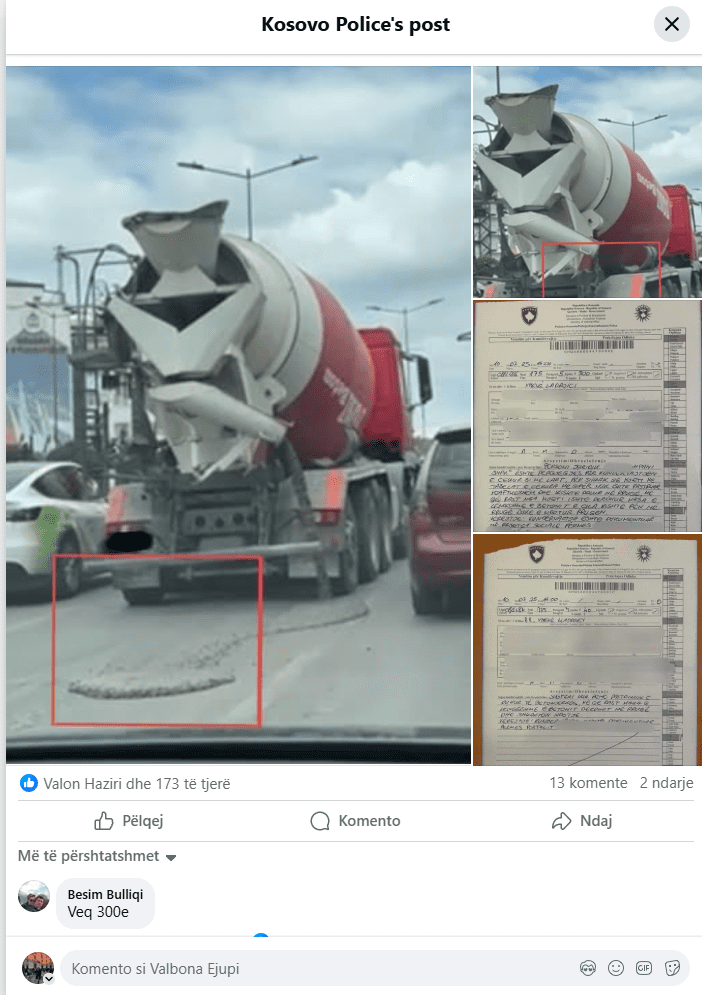 Vlen të theksohet se dje, AutoPortali ka raportuar për një rast shqetësues në magjistralen Prishtinë–Mitrovicë, konkretisht në fshatin Shkabaj, ku një kamion që po qarkullonte në trafik ishte duke derdhur copëza betoni në rrugë. Ky veprim ka rrezikuar seriozisht sigurinë e pjesëmarrësve të tjerë në komunikacion, duke krijuar kushte të rrezikshme për qarkullim dhe potencialisht mund të shkaktonte aksidente.