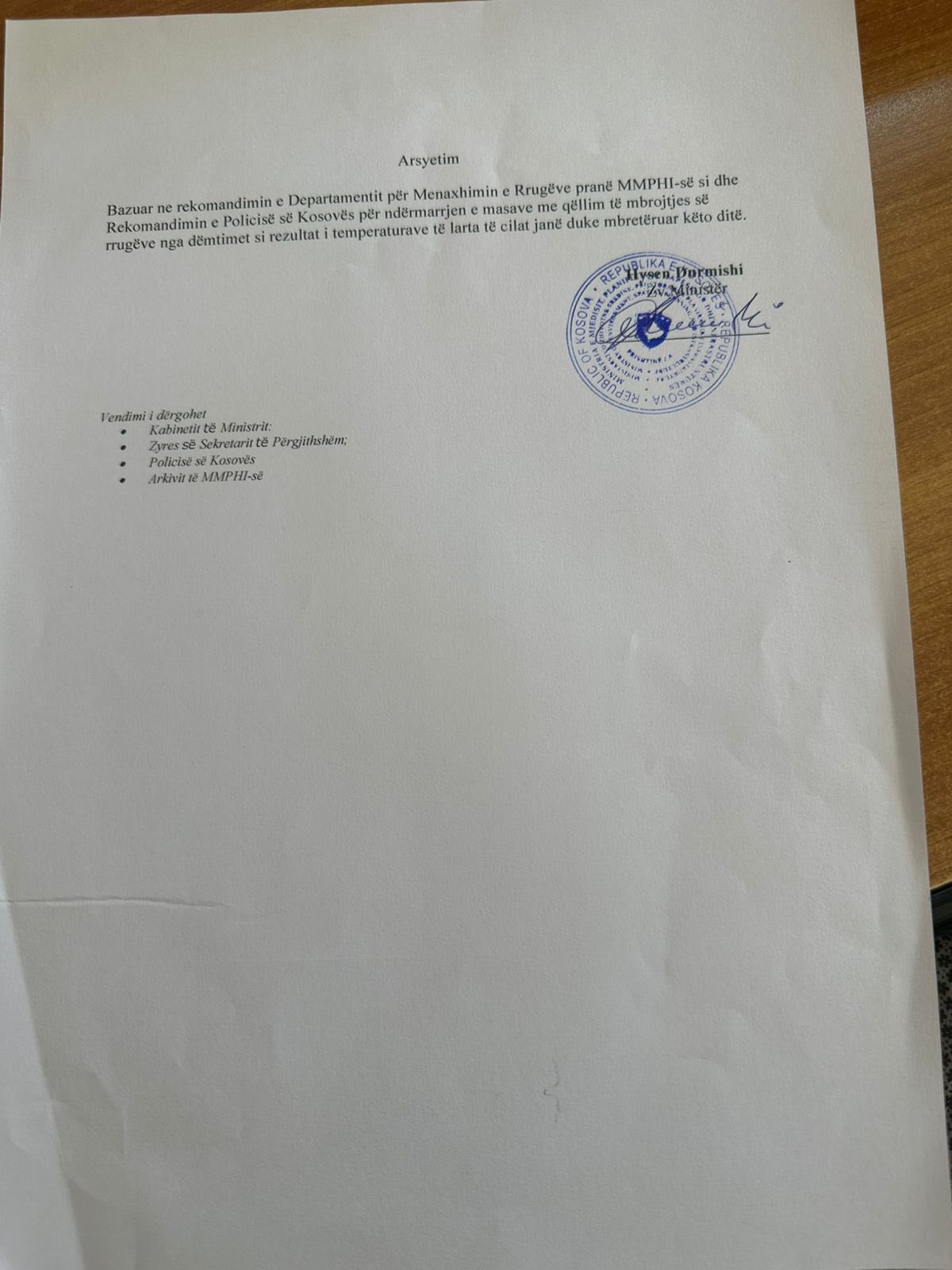 “Kjo masë është ndërmarrë për të parandaluar dëmtimin e infrastrukturës rrugore dhe për të garantuar sigurinë në trafik, në kushte ekstreme klimatike,” tha Durmishiu në një deklaratë publike.