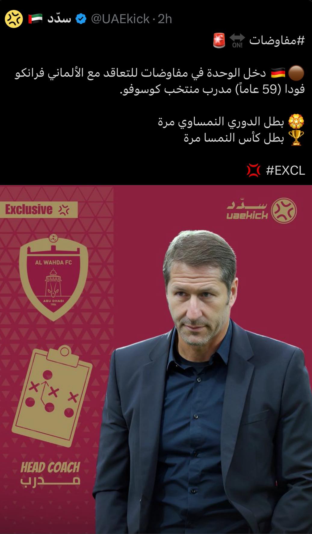 Trajneri i Kombëtares së Kosovës në futboll, Franco Foda, raportohet nga mediat arabe se ka marrë një ofertë nga skuadra, Al-Ëahda.