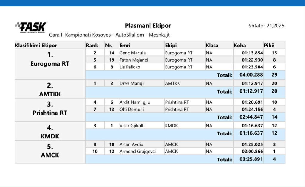 Në pozitën e dytë u rendit Genc Macula i Eurogoma RT, ndërsa në podium u gjend edhe Faton Majanci, po ashtu i Eurogoma RT.