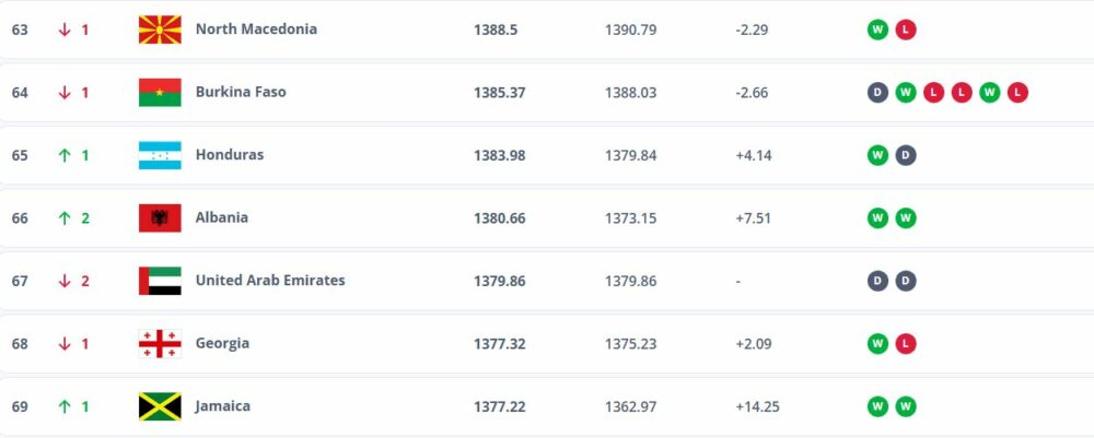 Këto suksese kanë ndikuar që Kuqezinjtë të ngjiten nga vendi i 68-të në të 66-in në ranglistën zyrtare të FIFA-s.