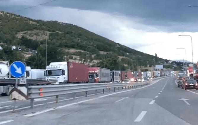 Një radhë e gjatë kilometrike e kamionëve të tonazhit të rëndë është krijuar pasditen e së hënës në aksin Bardhoc–Vermicë, në rrugën Morinë–Kukës, me drejtim nga Shqipëria drejt Kosovës.