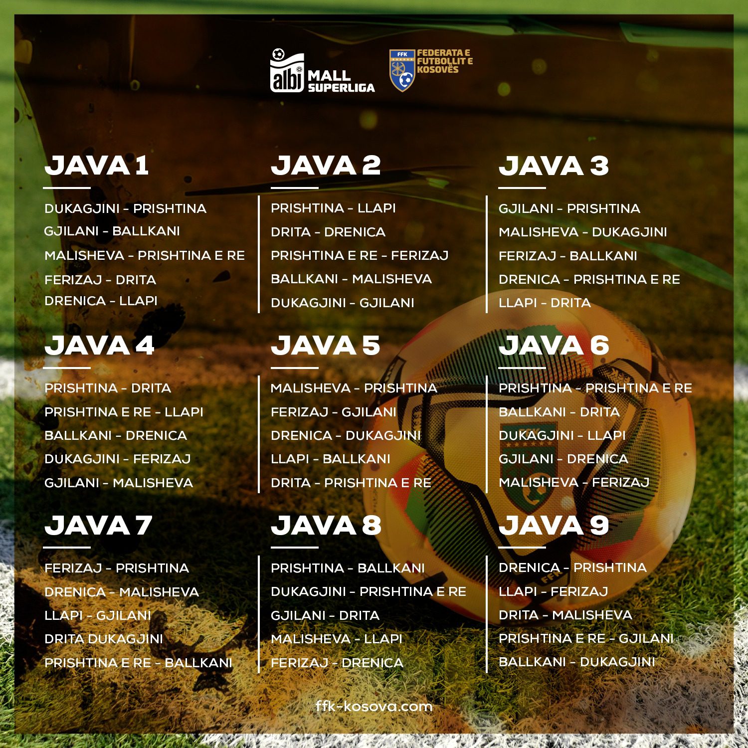 Federata e Futbollit të Kosovës ka publikuar çiftet e fazës së parë për edicionin e ri të kampionatit të Superligës së Kosovës.
