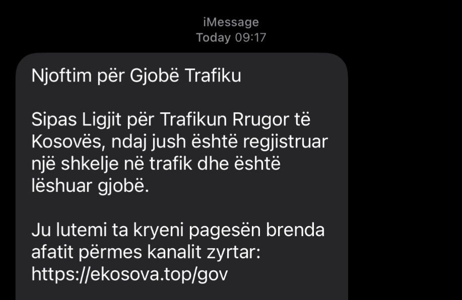 Policia e Kosovës ka njoftuar qytetarët për një fushatë mashtruese që po qarkullon përmes mesazheve, të cilat në mënyrë të rreme pretendojnë se janë dërguar nga Autoritetet e Trafikut të Kosovës.