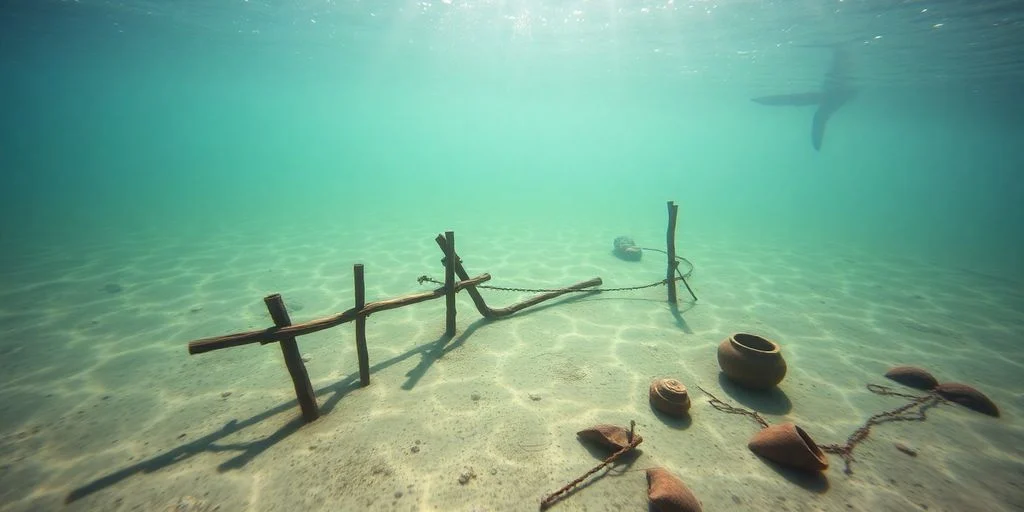 Objekte në fund të liqenit të Ohrit shihen në fshatin Lin, Shqipëri, më 11 korrik 2025.