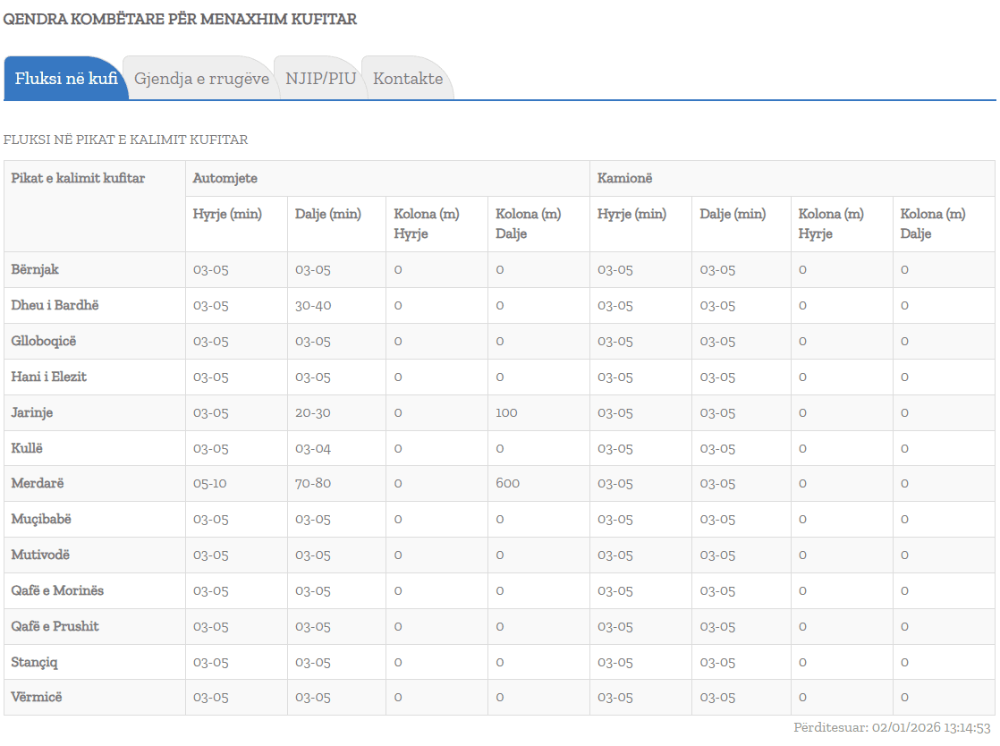 Qendra Kombëtare për Menaxhim Kufitar, ka përditësuar të dhënat e fundit.