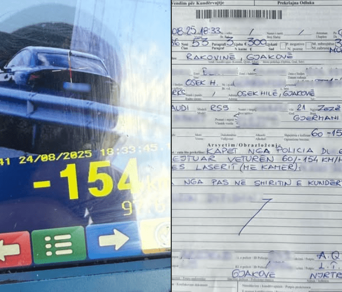 Njësia Rajonale e Trafikut Rrugor në Gjakovë ka evidentuar një shkelje të rëndë të rregullave të qarkullimit, më 24 gusht 2025. Gjatë patrullimit me veturë inteligjente dhe përmes pajisjes me laser për matjen e shpejtësisë, është ndaluar një automjet që po lëvizte me 154 km/h në një zonë me kufizim shpejtësie prej vetëm 60 km/h.