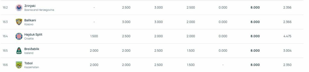 Ndër klubet, Ballkani vazhdon të jetë më i suksesshmi nga Kosova, duke u renditur në vendin e 163-të, përpara Hajduk Splitit të Kroacisë. Pas tij vjen Drita, që mban pozitën e 190-të, duke lënë prapa skuadra si Larne dhe Brondby, shkruan AutoPortali.