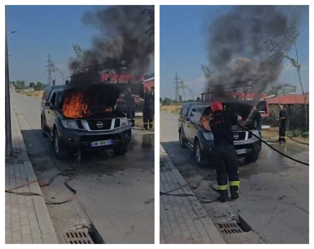 Një mjet “Nissan” është përfshirë nga flakët në unazën veriore të qytetit të Korçës.